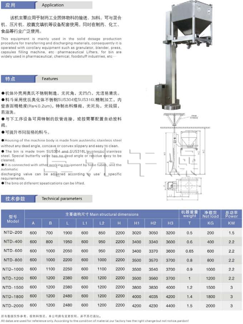 该机主要应用于制药工业固体物料的输送、加料。可与混合机、压片机、胶囊充填机等设备配套使用。同时在制药、化工、食品等行业广泛使用。